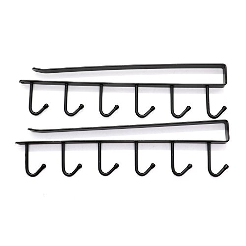 Multi-function Coffee Mug Hooks Metal Hanger Rack Hanging Storage Shelf for Cabinet Wardrobe (2 Pack)