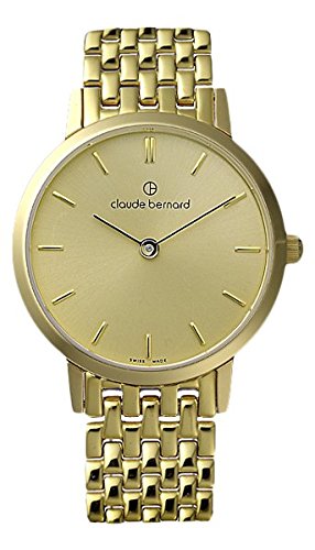 -. Binding : Watch -. Brand : claude bernard -. Department : womens -. EAN : 7640161371347 -. Feature : Gold-tone bracelet watch with polished bezel featuring tonal dial with stick indices and logoing under 12 o'clock position / 27 mm stainless steel case with mineral dial window / Swiss quartz movement with analog display / Stainless steel band with invisible double-locking clasp closure / Water resistant to 30 m (99 ft): In general, withstands splashes or brief immersion in water, but not suitable for swimming -. Label : Claude Bernard MFG -. Manufacturer : Claude Bernard MFG -. Model : 20201 37JM DI -. MPN : 20201 37JM DI -. PackageQuantity : 1 -. PartNumber : 20201 37JM DI -. ProductGroup : Watch -. ProductTypeName : WATCH -. Publisher : Claude Bernard MFG -. Studio : Claude Bernard MFG -. Title : Claude Bernard Women's 20201 37JM DI Gents Slim Line Analog Display Swiss Quartz Gold Watch
