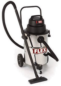The Flex Stainless Steel Vac delivers the rugged durability and professional performance you need for garage, shop, workshop, factory, or office. Stainless steel tank is easy to clean and features a tank drain that lets you empty the tank without lifting the vac. Super quiet performance for use in a variety of hospital, office and school environments. Comes equipped with static guard strap and full dolly with tool holder. Standard equipment includes 12-Feet x 1.25-Inch hose, 2 - 1.25-Inch extension wands, 10-Inch dual surface nozzle, round brush nozzle, cartridge filter with retainer and collection bag.Feature
