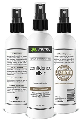 CONFIDENCE ELIXIR - A unique blend formulated by the yoga and meditation gurus at ASUTRA. A light clean mist infused with LEMONGRASS & JASMINE ESSENTIAL OILS that promotes feelings of confidence, happiness & inner strength. The therapeutic power of our aromatherapy blends works so well that we offer a full refund no questions asked.