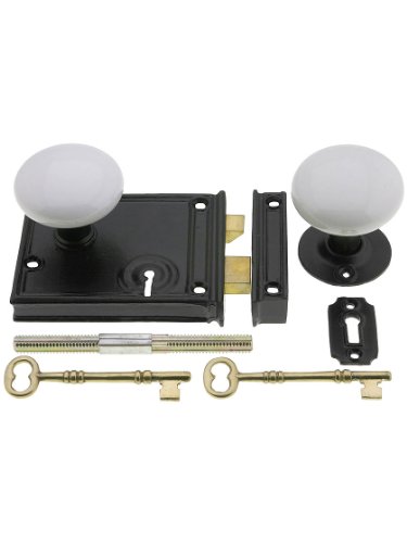 -. Title : Cast Iron Horizontal Rim Lock Set With White Porcelain Door Knobs. Iron Rim Lock.