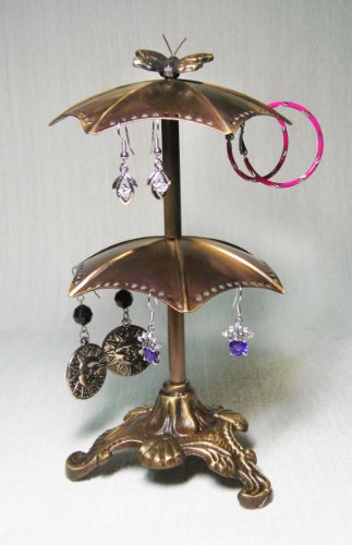 -. Binding : Kitchen -. Color : Brown -. EAN : 4715309364789 -. Feature : Umbrella design with European stylish base makes it elegant, gorgeous. / 2 tiers with about 120 holes for storing up to about 6~12 pairs of earrings. / Antique brass finish / Size of product: 23 cm H x 11 cm W / It is made of brass with a sturdy stylish base, durable construction, selecting earring more easily, nice quality. / Material: Brass / Perfect gift for her / Made in Taiwan / It is rotatable with hand -. Label : Taiwan -. Manufacturer : Taiwan -. Model : NT10 -. ProductGroup : Home -. ProductTypeName : HOME -. Publisher : Taiwan -. Studio : Taiwan -. Title : "Brass" 2 Tiers Rotating Earring Stand (Butterfly) / Earring Organizer / Earring Holder / Earring Display