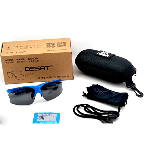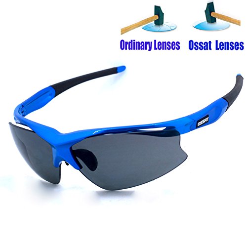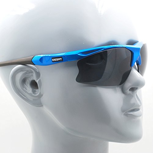 Ossat Pc Polarized Sports Sunglasses for Baseball Cycling Fishing Golf TR90 Superlight Frame (Blue)