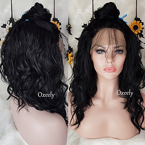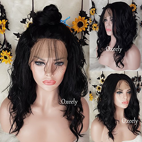 Oxeely LOB Hair Wigs Black Synthetic Lace Front Wigs Short Wavy Bob Hair Heat Resistant Synthetic Lace Front Wigs For Black Women