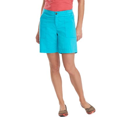 Our laurel run iii shorts pack all the functionality of a traditional cargo without any of the bulk. The lightweight cotton poplin has a bit of stretch for ease of movement and shape retention. The front utility-style pockets are streamlined to lie flat, and the back welt pockets create a slimming silhouette. 98 percent cotton/2 percent spandex boulder-washed poplin. Inseam 8 inchFeature