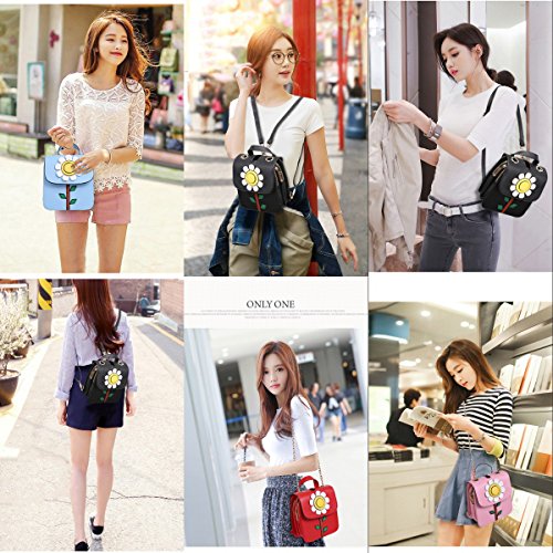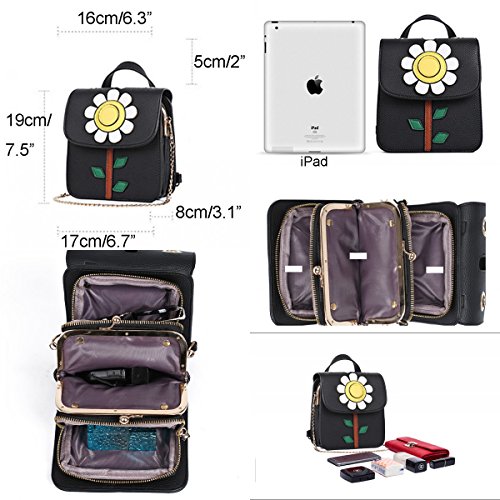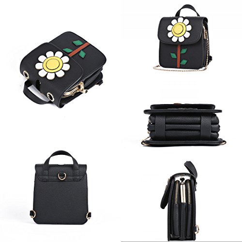 -. Feature : ★Women's / girls convertible mini leather backpack with cute sunflower design, also come with a chain shoulder strap, it can be used as a backpack, shoulder bag, handbag, cross body bag / ★Structure: clip-clasp closure main pocket, two zipper pockets; Well store and organize your cellphone, wallet, keys, credit cards, tissue, cosmetic, and other small personal belongings / ★High quality lichee pattern PU leather material and polyester lining / ★Cute convertible leather backpack purse cross body shoulder bag for women/girls, suitable for any occasions, you can take it to office, school, shopping, dating, party, prom, evening, wedding, outing and other outdoor activities / ★Size: (L*W*H) 17*8*19 cm / 6.7*3.1*7.5 inch, handle:5 cm / 2 inch; please note the size before ordering, and please allow 1-3 cm measure error