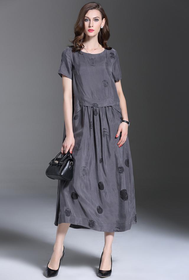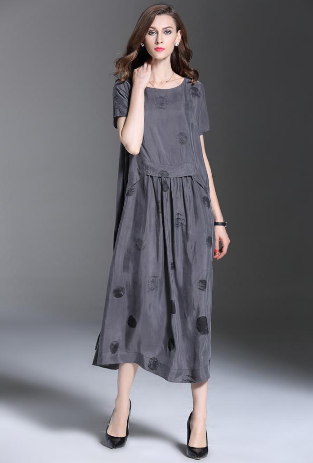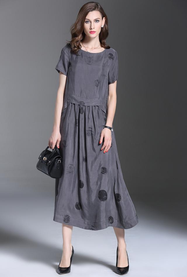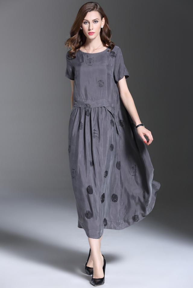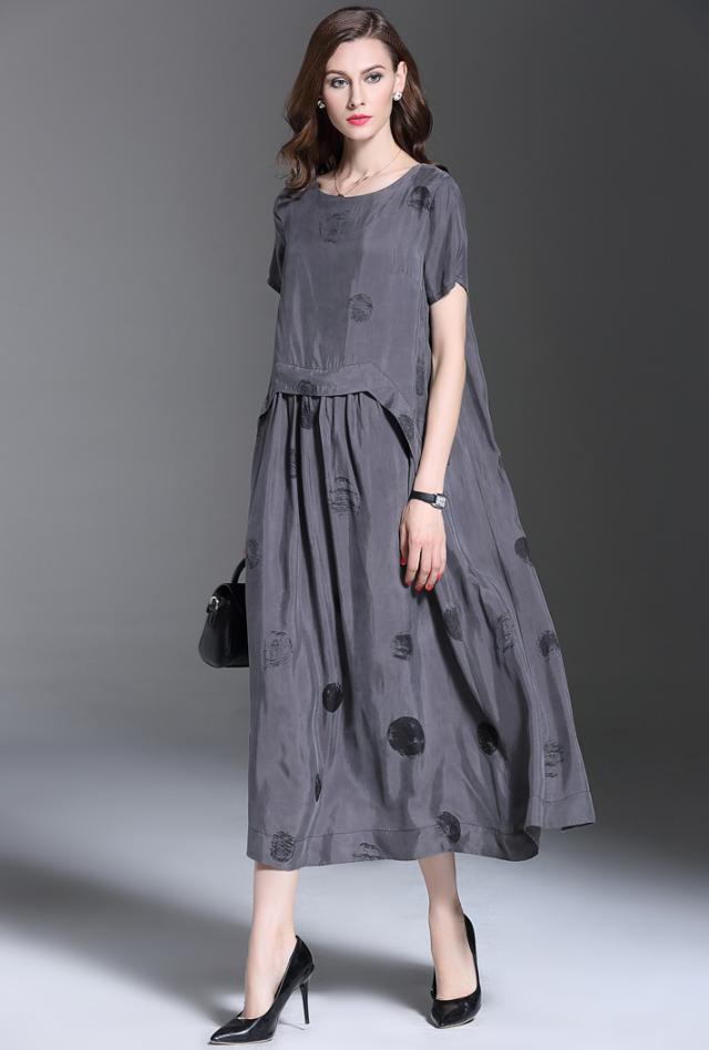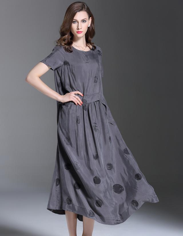 ドット ワンピース 半袖 ロングワンピース カジュアル 女子会 買い物 デート通勤