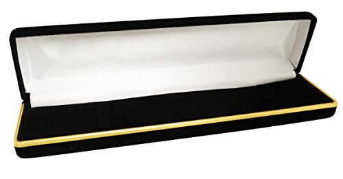 -. Feature : Beautiful Black Velvet Exterior Finish / Dimensions: 8" x 2" x 1.2" Inches / Bracelet Pad with Clips to Secure Jewelry / Showcase Your Jewelry & Gift in this Exquisite Box / Jewelry Not Included