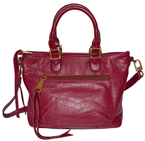-. Feature : Aimee Kestenberg Raspberry Embossed Leather / 5" Drop Double Handles with 12" Drop Removable Shoulder Strap / Measures :11" /9.5" (L) x 8" (H) x 4" (D) / Zip Top Closure with Exterior Zipper Pocket / Signature Lining with One Zip Pocket & 2 Slip Pockets