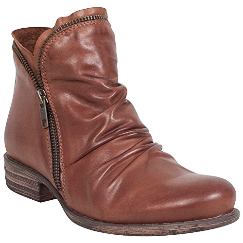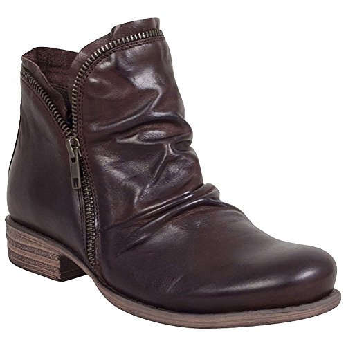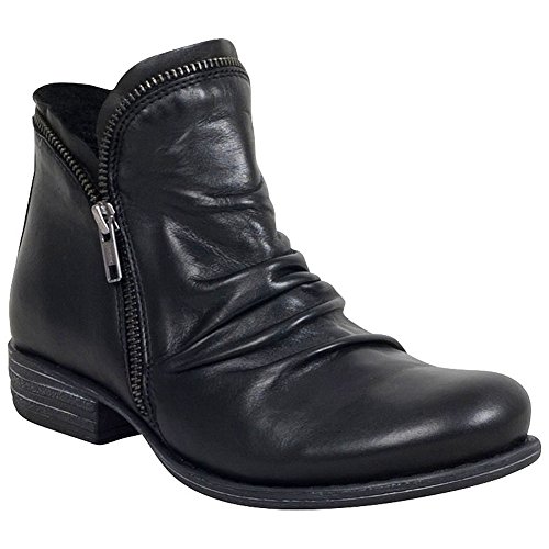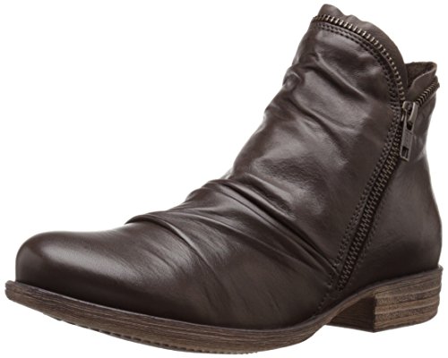 An easygoing, zip-on ankle boot with this season's slouchy silhouette: Miz Mooz's "Luna," featuring a rounded toe, 1-inch heel, and all-around metal zipper. Made in Portugal.