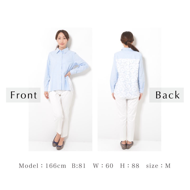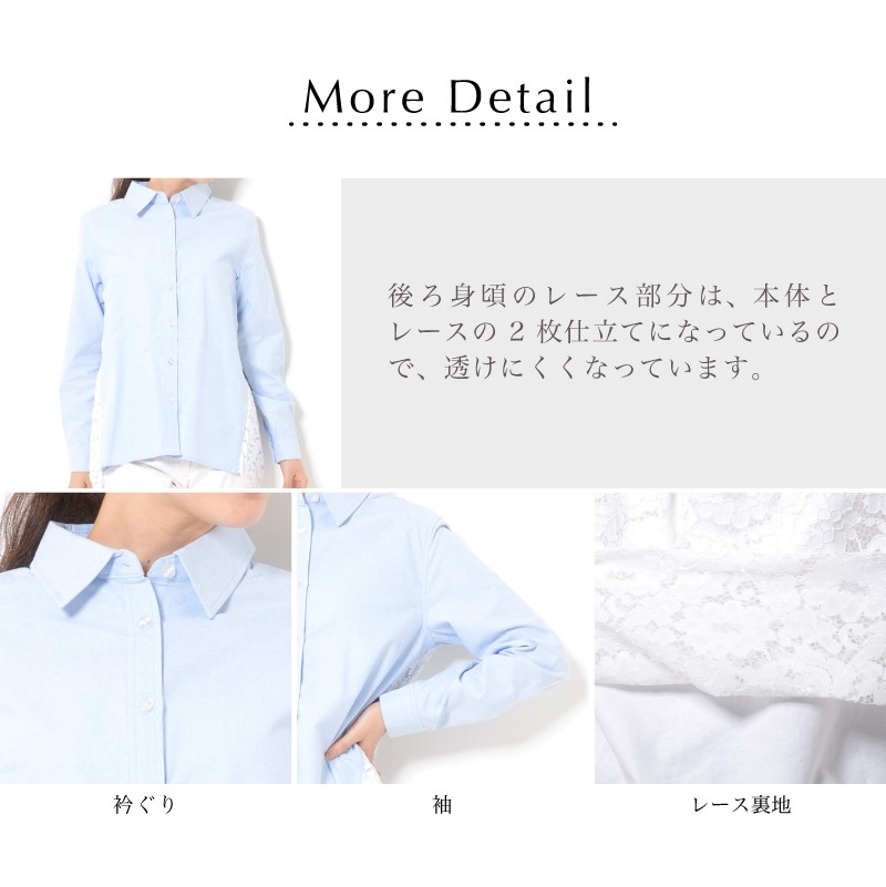 後ろ身頃のレース部分は、本体とレースの2枚仕立てになっているので、透けにくくなっています。