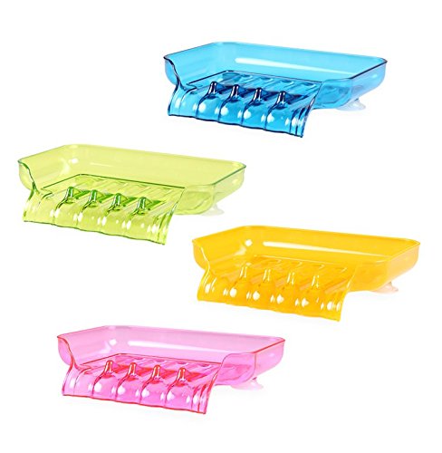 Chris-Wang 4Pack Suction Cup Waterfall Soap/Sponge Drain Dish/Rack/Saver/Holder/Dispenser for Kitchen Sink/Bathroom Basin(Blue/Green/Orange/Hot Pink)