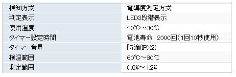 | 素材・材質 | 本器:ABS、先端部:ABS、センサー部:鉛レス黄銅(金メッキ) |