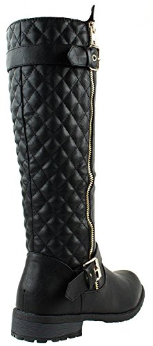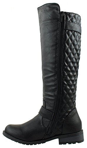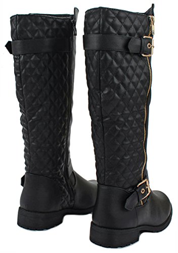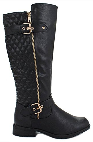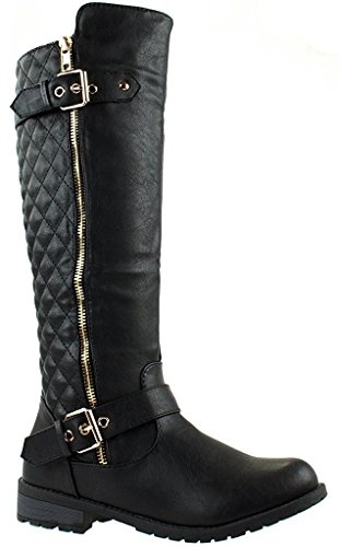 Forever Mango-21 Women's Winkle Back Shaft Side Zip Knee High Flat Riding Boots (8, Black_B-32)