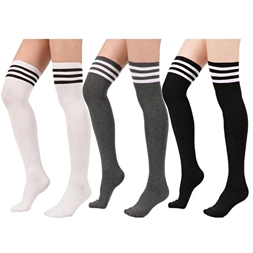 -. Title : TooPhoto Athlete Stripes Triple Over Knee Thigh High Stockings Socks for Women