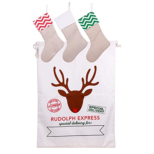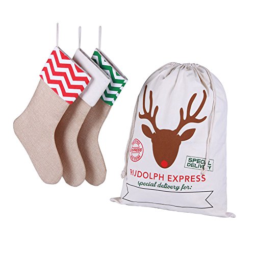 Perfect Set:Perfect combination of 3 pack stockings for small gifts and 1 pcs bag for bigger presents. One set can solve your gift-holding problem