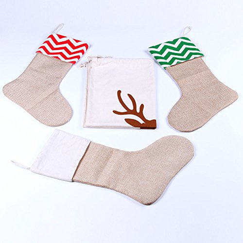 3 Pack Natural Burlap Christmas Stockings for Classic Holiday Decoration and Gift Holder, with 1 Pcs Personalized Jumbo Santa Bag (4 Pack)