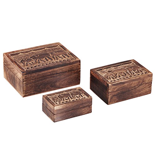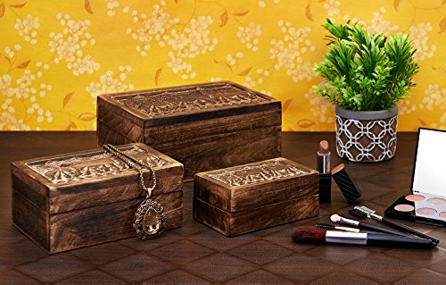 Valentine's Day Gift Set Of 3 Decorative Wooden Jewelry Box Trinket Organizer Keepsake Storage Box Multipurpose Accessories - Mango Wood.