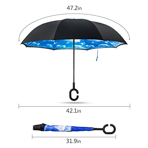 Studio : ELOVTOP Publisher : ELOVTOP Binding : Misc. Product Description New Creative Modern C-Handle Inside-Out/Upside Down/Inverted/Reverse Umbrella