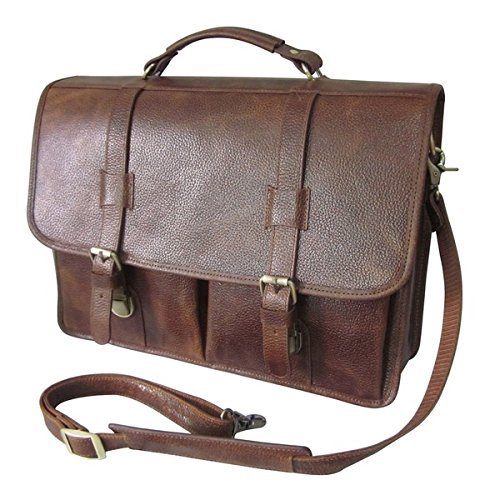 Product DescriptionBrown Leather Professor Briefcase, Flapover, Business Type, Locking Briefcase Leather Shoulder Strap Carrying handle0