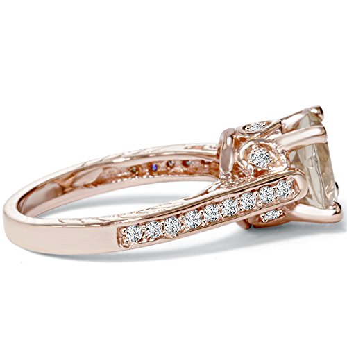 -. Title : 2 Carat Morganite & Diamond Vintage Engagement Ring 14K Rose Gold
