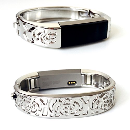 -. Title : BSI Set 2 Silver Metal Flowers Design Jewelry Replacement Accessory Bracelets For Fitbit Alta Fitness Activity Tracker