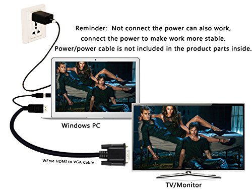 WEme 6ft Active HDMI to VGA USB-Powered Converter Cable (Male to Male) with Micro USB Charging Port Supporting up to 1920 x 1080 for PC TV Laptop NoteBook HD DVD