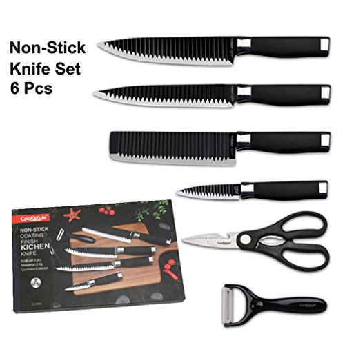 Cookstyle Non-Stick Classic Coating Kitchen Knife Natural Non Stick Stainless Steel knife Set 6 Pcs