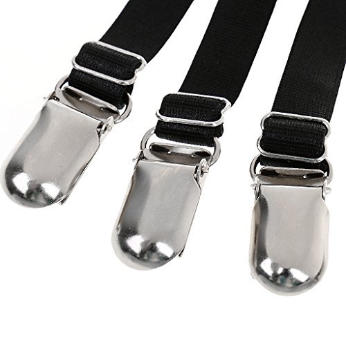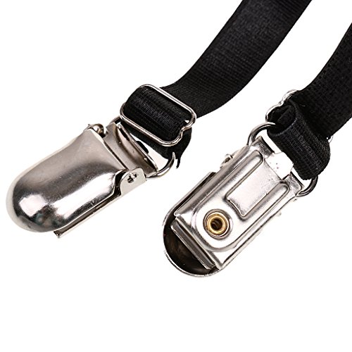 Description: Material:High elastic nylon Recommend for thick shirt better Each belt is elastic,can adjust according to your leg size With gels inside the garter,effectively for anti-slip Each garter comes with 3 buckles,keep your shirt straight and firm