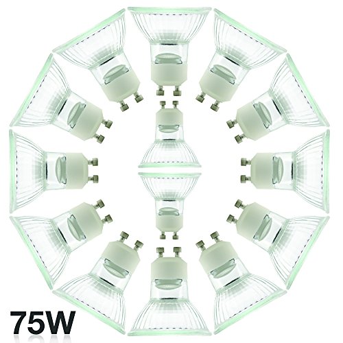 Studio : eTopLighting Publisher : eTopLighting Product Description eTopLighitng GU10 75 Watt Halogen Light Bulb features a clear glass cover that provides luminous crisp light for a gorgeous light output. Great for use in recessed cans, track lighting, and in outdoor light fixtures, for the home, office restaurants, and more. Specifications - Wattage: 75W - Voltage: 120V - Life Hours: Approximately 2,000 life hours - Bulb Dimensions: 2" x 2" - Versatile: Can be applied in a number of applications and uses. Contents 14 x GU10 120V 75W Halogen Bulbs Warranty For any possible defective products, please contact us first. We will do our best to make it right with either a replacement or refund. 0