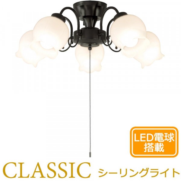 | クラシカルアンティークな王道デザインのシーリングライトです。LED電球を搭載していますが、白熱電球もご使用いただけます。 |