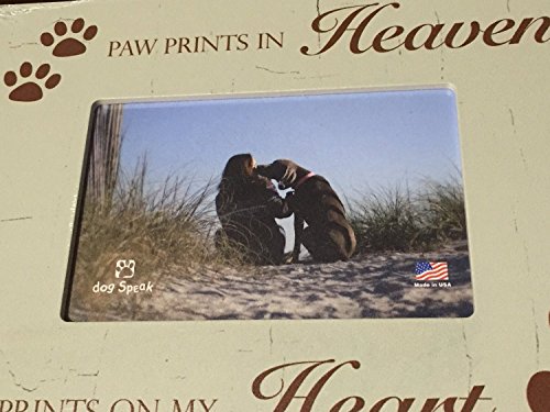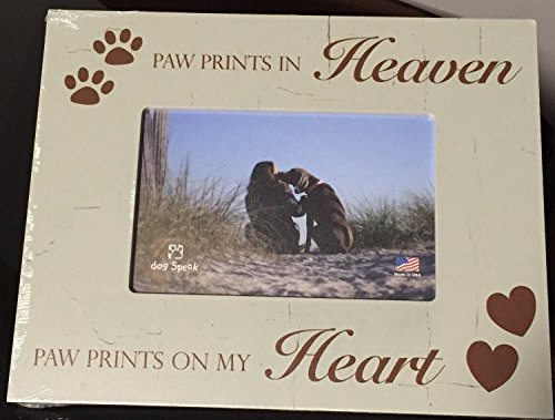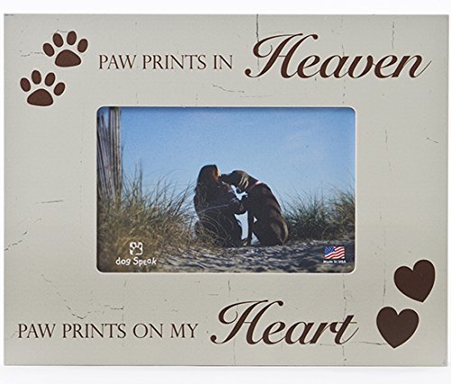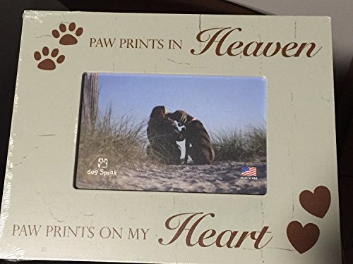 -. Binding : Kitchen -. Brand : Dog Speak -. Color : Green -. EAN : 0854369002584 -. Feature : Paw P.R.Ints In Heaven Paw P.R.Ints On My Heart 4x6 Wood Picture Frame / 7x9.5" Overall Size holds a 4x6 Photograph / Has an easel stand or can be wall hung. / Distressed Wood Look / Made In The USA -. IsAutographed : 0 -. Label : Dog Speak -. Manufacturer : Dog Speak -. Model : 3101 -. MPN : 3110 -. PackageQuantity : 1 -. PartNumber : 3110 -. ProductGroup : Home -. ProductTypeName : HOME -. Publisher : Dog Speak -. Size : 7" x 9" -. Studio : Dog Speak -. Title : Paw P.R.Ints In Heaven Paw P.R.Ints On My Heart 4x6 Pet Dog Wood Picture Frame -. UPC : 854369002584