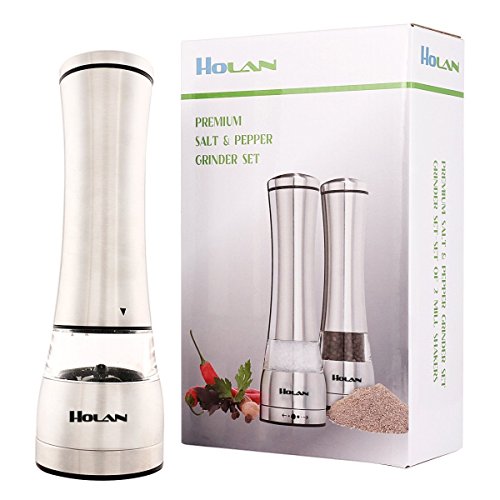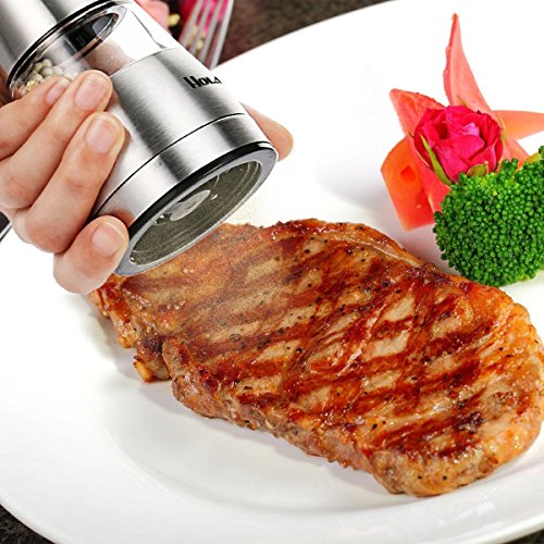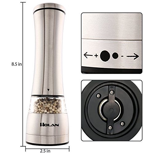Holan Stainless Steel Salt and Pepper Mill Pepper Grinder Set Shaker,Acrylic Glass Construction,Ceramic Rotor Adjustable Coarseness for Flavor & Seasoning【Pack of 2】