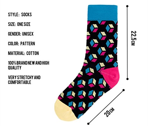 -. Binding : Apparel -. Brand : Losa Kute -. Department : mens -. Feature : SIZE -- Fits socks size 8-14; men shoes size 7-13 / women shoes size 9-12.5. / MATERIAL - Our unisex crew socks are made of 75% Cotton, 22.7% Polyamide, 2.3% Elastance, soft, comfortable, stretchy and breathable. / FEATURES - The novelty men's cotton socks are Moisture wicking, ventilation, smell free, medium thickness, soft touch and durability, hold up well in the laundry. Suit for men's sandals, casual, athletic, dress or formal shoes. / EYE-CATCHING -The colorful patterns and special design will make you noticed. / SATISFACTION GUARANTEE - Just contact us if you have any problem.We will get you back within 24 hours and try our best to make things right! -. IsAdultProduct : 0 -. PackageQuantity : 1 -. ProductGroup : Apparel -. ProductTypeName : SOCKSHOSIERY -. Title : Men’s Nolvelty Socks Unisex Crew Dress Cotton Socks Women’s Casual Fun Crazy Pattern Cool Sock