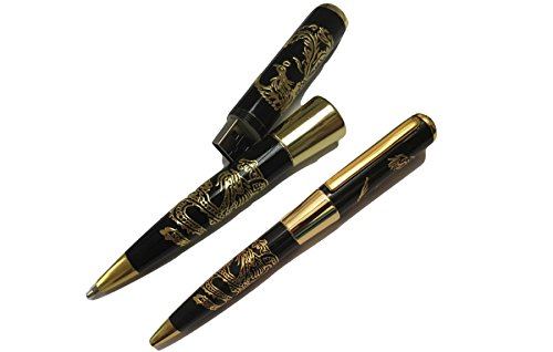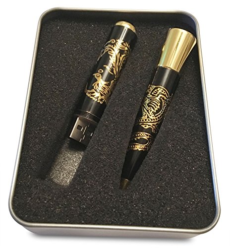 Premium quality executive Ballpoint pen in metallic colors with USB flash drive, packed in fancy silver gift box. The right gifts for executives and loved ones (32GB, Black with Golden Inscription)