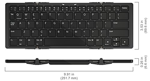- Feature : Compact size -- Jorno provides the ultimate level of mobility. It easily folds up to a compact size so you can be productive while on the go. / Bluetooth -- Bluetooth connectivity allows you to connect Jorno wirelessly to your mobile device so that you can place the keyboard anywhere you like. This connectivity even works with your desktop or tablet. / Convenient case and stand (included) -- The protective case for Jorno doubles as a stand that securely holds your device in either portrait or landscape orientation. It adjusts to the perfect viewing angle just for you. / Easy input -- The keys on Jorno are just 9% smaller than standard keys. These nearly full size keys offer ease and accuracy in long form typing, word processing, blogging, emailing, and note taking. / The original, authentic Jorno keyboard!