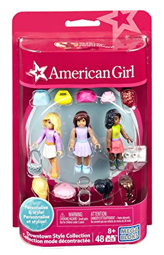 -. Binding : Toy -. Brand : Mega Bloks -. EAN : 0887961330939 -. Feature : Create a diverse world to play in! / Three unique, highly detailed, fully articulated American Girl mini figures / Customize your American Girls by changing their outfits and hair / Each figure is highly detailed and offers a distinct look / Combine with other Mega Bloks American Girl play sets to build your own stories! -. IsAdultProduct : 0 -. Label : Mattel -. Manufacturer : Mattel -. Model : DRC74 -. MPN : DRC74 -. PackageQuantity : 1 -. PartNumber : DRC74 -. ProductGroup : Toy -. ProductTypeName : TOYS_AND_GAMES -. Publisher : Mattel -. ReleaseDate : 2016-07-15 -. Studio : Mattel -. Title : Mega Bloks American Girl Figurine Downtown Style Collection -. UPC : 887961330939 -. Warranty : 1 year warranty against manufacturer defects
