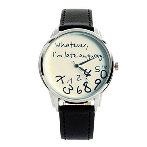 -. Feature : Soft, Flexible Leather Band / Dial:3.8cm wide / Whatever, I'm late anyway / Very fashionable and stylish. Makes a great gift! / Japan Quartz Movement