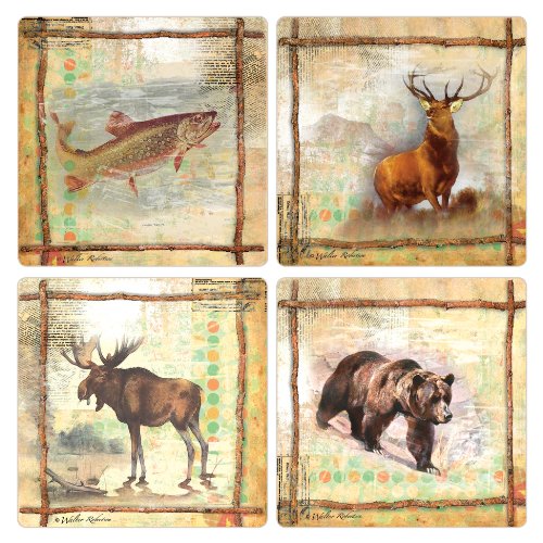 CoasterStone AS2580 Absorbent Coasters, 4-1/4-Inch, Call of The Wild Trout Elk Moose Bear, Set of 4
