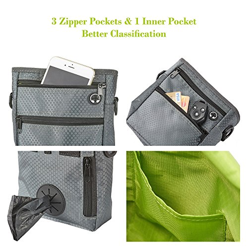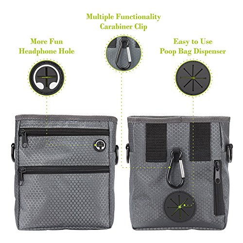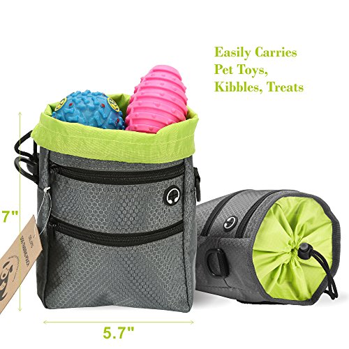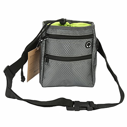 This is a great item to have for daily walks and training. The bag dispenser is very handy and the drawstring feels secure. You can use the shoulder strap and wear it as a crossbody. The extra pockets are perfect for phones/credit card so you don't have to worry about bringing a handbag when you walk to any stores or cafes. This is the best treat pouch for you.