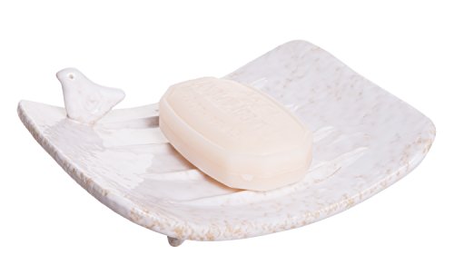 Farmhouse Style Stoneware Soap Dish with Bird, Medium 5-inch