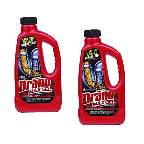 -. Feature : FAST ACTING: Drano Max Gel contains the power to cut straight to the source of clogs. Super concentrated formula works in as little as 15 minutes. / POWERFUL: The thick bleach formula in Drano Max Gel Clog Remover cuts right through standing water, clinging to your toughest clogs to blast them fast. It works great to remove hair, soap scum, and other gunky clogs. / VERSATILE: Safe for garbage disposals, bathroom, kitchen and other drains, like laundry sinks. Also contains ingredients protecting pipes from corrosion. / DIRECTIONS: Pour half the bottle slowly over the drain. For very bad clogs, use the full bottle. Allow the product to sit for 15 minutes, or 30 minutes for tougher jobs. Flush the drain with HOT water when done. / SPECIFICATIONS: Package includes: (2) 32oz. Bottles of Drano Max Professional Strength Gel.