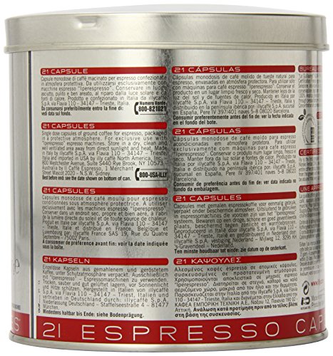 • Each tin contains 21 capsules of illy's legendary blend of 100% Arabica coffee.