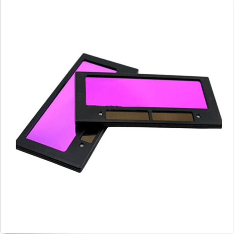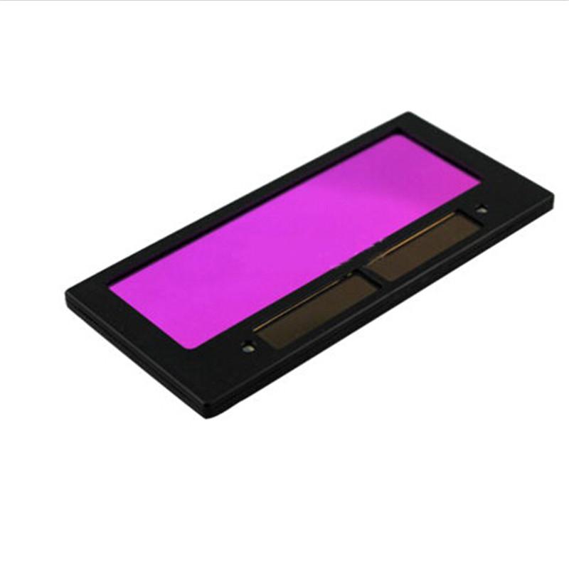 100% Brand new This is high quality Solar Auto Darkening Welding Lens Filter,with solar charge function and full automatic ON/OFF,very convenient and efficient. It can shade automatically in welding states and filter out the bad light. You will have a good protection with it at working and precent occupational disease. If you want to get a effective and safety environment,buy it now!!! It Fits all standard welding helmet window opening. Automatic ON/OFF Easy and safety to operate Light weight design High clear view filter Use high quality LCD and multilayer optical interference filter. Shade control: Light states:DIN3 Dark states:DIN11(10) Power supply by Solar battery and lithium battery(no power supply switch) Size of cartridge: about 108x50x5.2mm View area:89x30mm Response time: 0.5ms · Recovery time: 0.3- 0.7 S (automatic adjustment) · Dark state: 4/11 · UV transmittance: <0.0001% (210-365nm) · Infrared transmittance: <0.01% (780- 2000nm) Package Included: 1 x welding lens preview