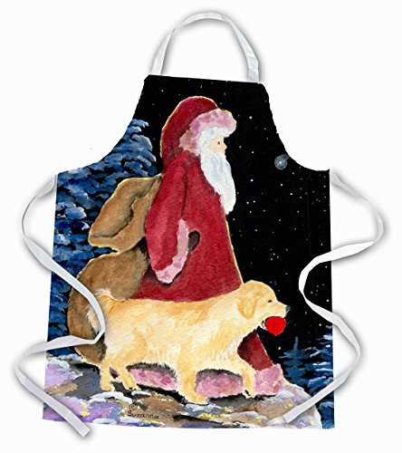 Caroline's Treasures SS8973APRON Santa Claus with Golden Retriever Apron, Large, Multicolor