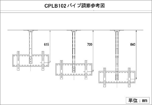 Adjustment is possible in 3 stages of 56.5 cm, 68.0 cm, 79.5 cm from the installation part of the ceiling back to the center of the television.