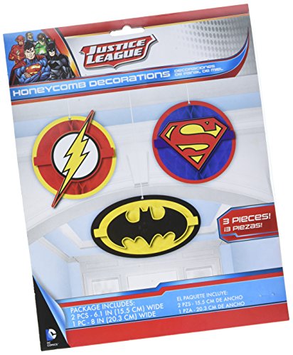 -. Title : Amscan Boys Adventure Filled Justice League Birthday Party Honeycomb Hanging (3 Piece), Multicolor, One Size