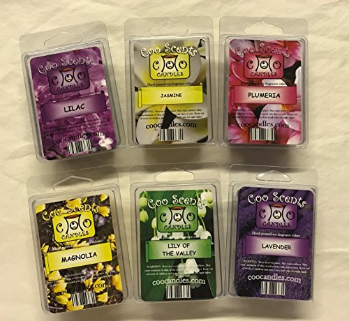 6 Pack Soy Wickless Candle Wax Bar Tart Melts - Floral Pack - Includes one 6 cube package of each - Lavender, Lilac, Plumeria, Magnolia, Jasmine, and Lily of the Valley
