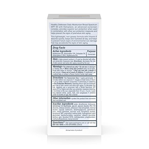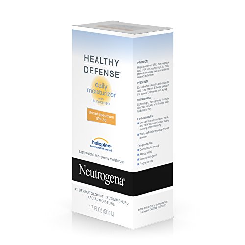 Help moisturize and protect your skin with Neutrogena Healthy Defense Daily Moisturizer with Broad Spectrum SPF 50 Sunscreen - Sensitive Skin. This lightweight, non-greasy formula is designed to give you both UVA and UVB protection while being gentle enough for sensitive skin. Made with Purescreen Technology, an exclusive blend of 100 percent naturally-derived sunscreens that protect you from the sun's damaging rays, this moisturizer provides superior sun protection when used in combination with other sun protection measures and helps prevent the signs of premature skin aging, while keeping skin hydrated. From the #1 dermatologist recommended brand, this Neutrogena formula is gentle, fragrance-free, and oil-free.Feature