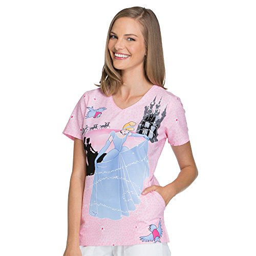 Tooniforms By Cherokee Women's V-Neck Cinderella Print Scrub Top